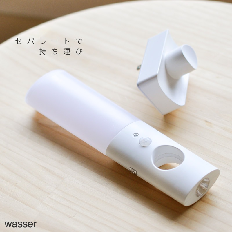 ・ベースと本体はセパレート式なので取り外して持ち歩きOK。懐中電灯として使える。