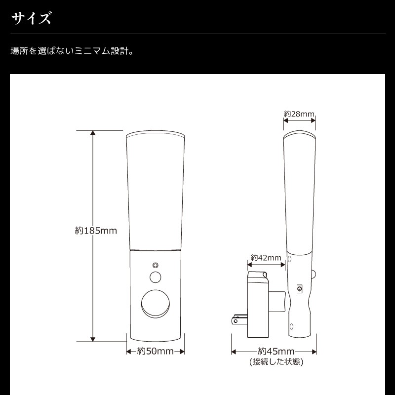 サイズ:最大約H185×W50×D45mm