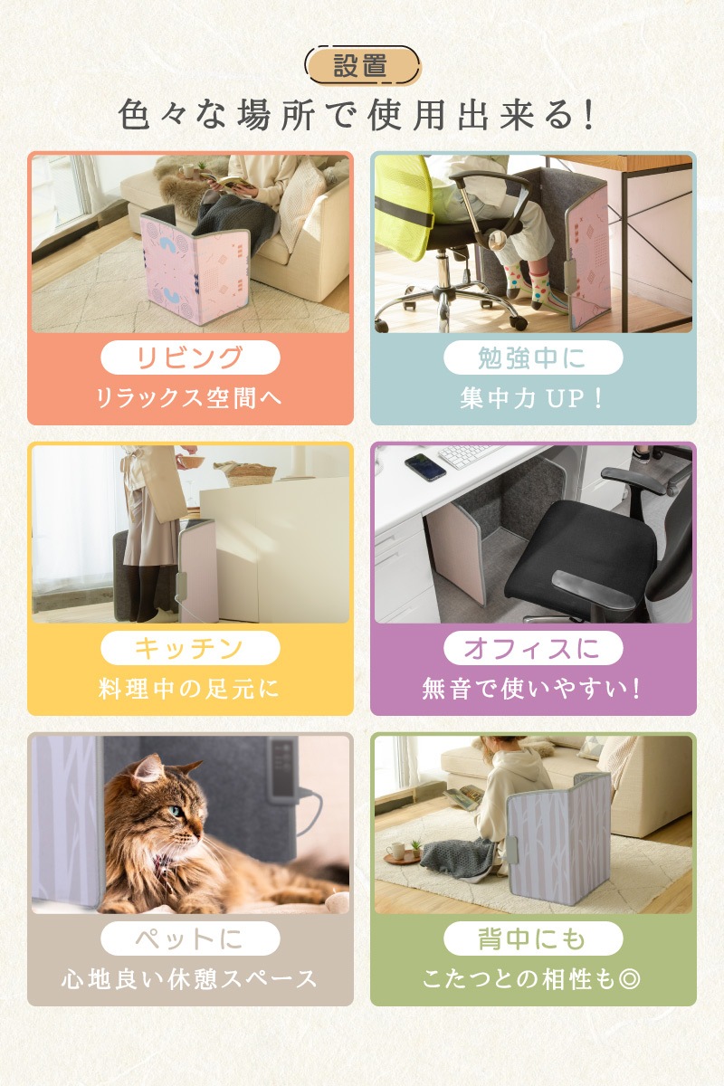 またパワフルな加熱で、革靴やスリッパを履いたままでもつま先から快適な暖かさをキープ。