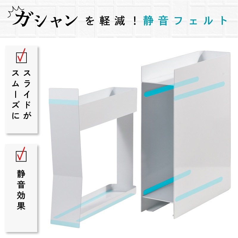 二段調味料ストッカー スライド式 キッチン 洗面台 コンロ 横 スリムサイズ すき間収納 スパイスラック ボトルストッカー マグネット 一人暮らし 折り目 調味料 ドレッシング 音がしない 白 ホワイト シンプル 収納 ストッカー