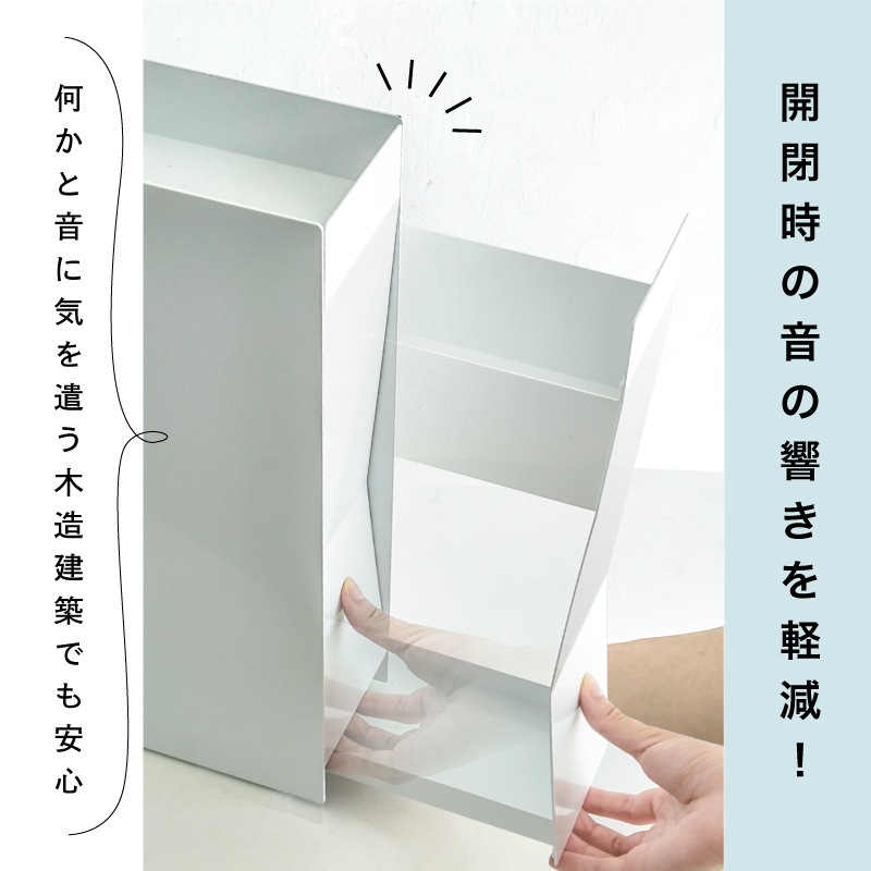 鉄製なので、マグネット製品を使って自由にカスタムしていただけます。マグネットフックで調理器具をかけても、鍋ぶたホルダーを設置しても◎。 本体と引き出しが擦れ合う内側部分には、フェルトを設置。引き出しがスムーズな上に、開閉時の音の響きを軽減してくれます。何かと音に気を遣う木造建築にお住まいの方にも安心です。