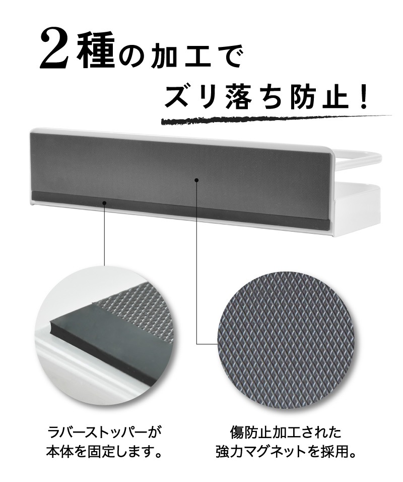・素材:スチール、マグネット ・サイズ:W約281*D約103*H約82mm ・重量:約608g ・耐荷重:約5kg ※スチールの厚みや表面の塗装、壁面の状態や強度によって異なります。 ・生産国:Made in China |