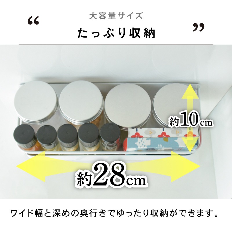 マグネットでカンタン設置、広々収納!「monowa044スパイスラック」です。 ●取り付け簡単!冷蔵庫やキッチンの空きスペースに。 ●広々使えるので、調味料やキャニスターを自由に置けます。 ●よく使う調味料を手に取りやすい位置に。 ●上部のみ細めのラインで囲われているので、落下防止にも◎。 ●強力マグネットでズレや落下を防止します。 ●洗面台や洗濯機など、マグネットが付く場所であればどこでもお使いいただけます。 ●どんなインテリアにもなじむシンプルなデザインです。 |