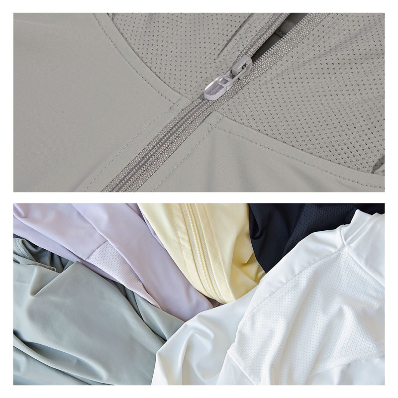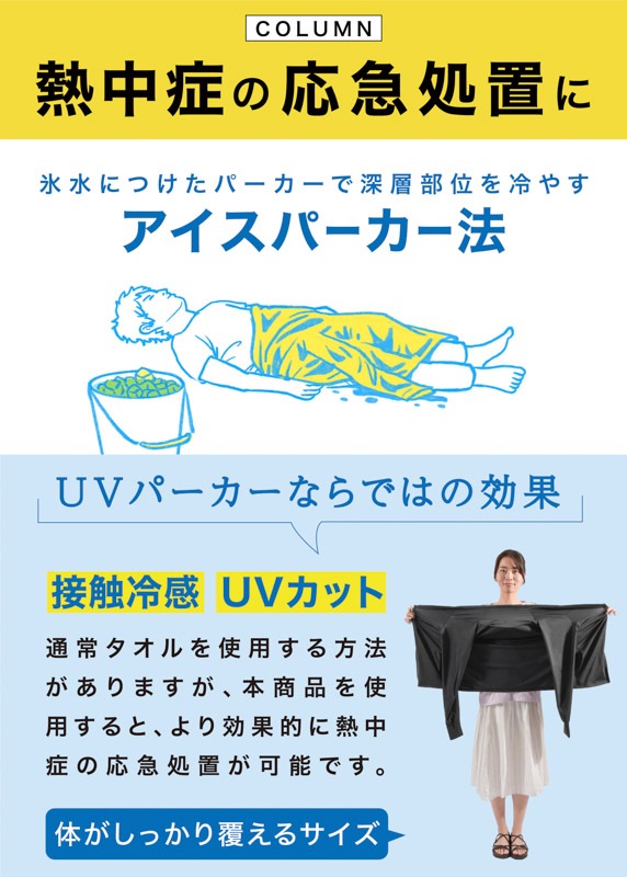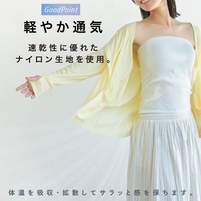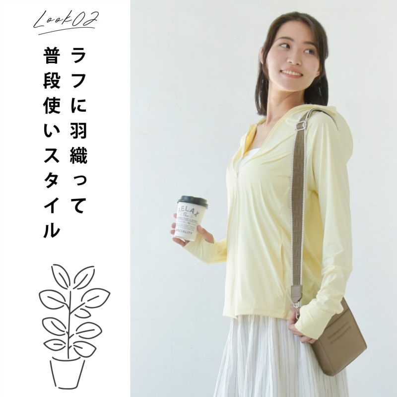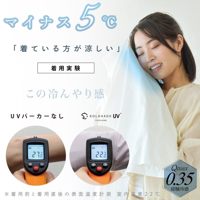 接触冷感-5℃仕様で、羽織った瞬間からひんやりと涼しく、屋外でも快適。