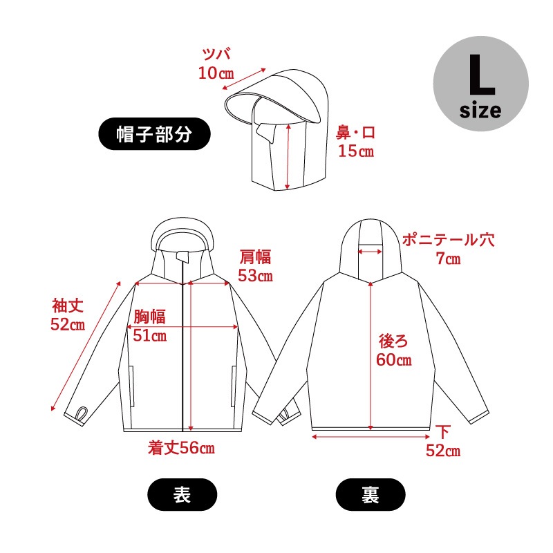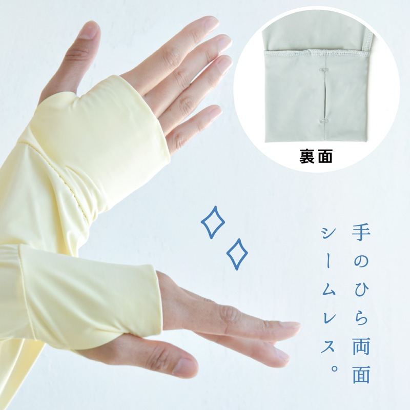 UPF50+の高性能生地が、真夏の強烈な紫外線をしっかり遮断。 1枚で顔・首・腕・手の甲までしっかりガードでき、両手が空くから屋外作業やアウトドアにも最適。 ストレッチ性が高く、ランニングやスポーツにも最適。