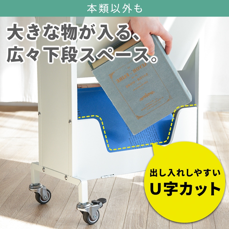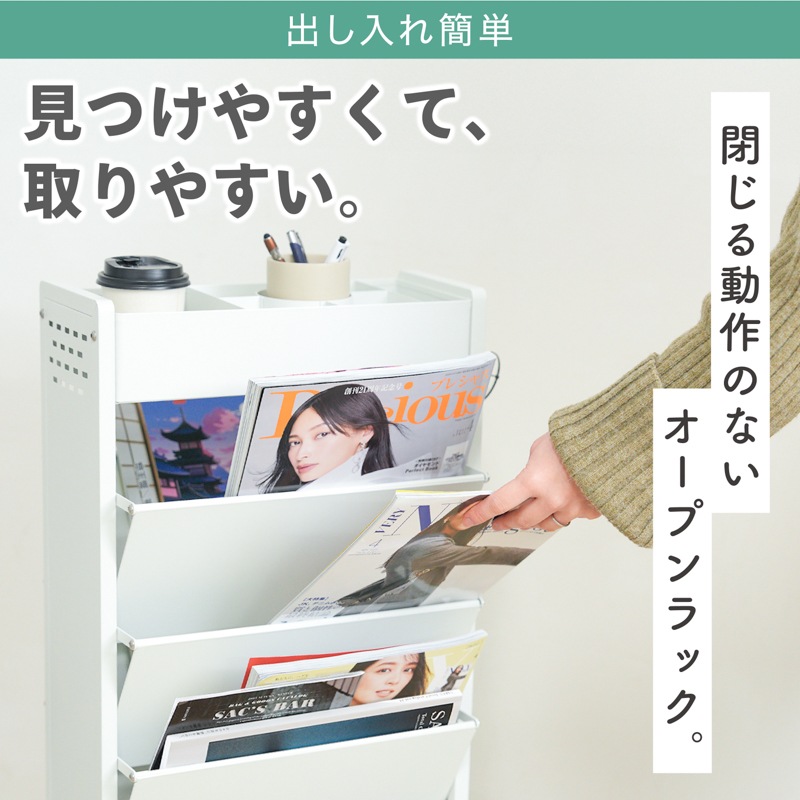 ◆デッドスペースを収納に活用したい。 ◆スリムな収納ラックを探している。 ◆子供部屋のブックスタンドとして使える。 ◆マガジンラックとして使える。 ◆大きな本や小物も収納したい。 ◆手軽に移動できる収納ラックがほしい。 ◆お部屋をスッキリ見せたい。 |