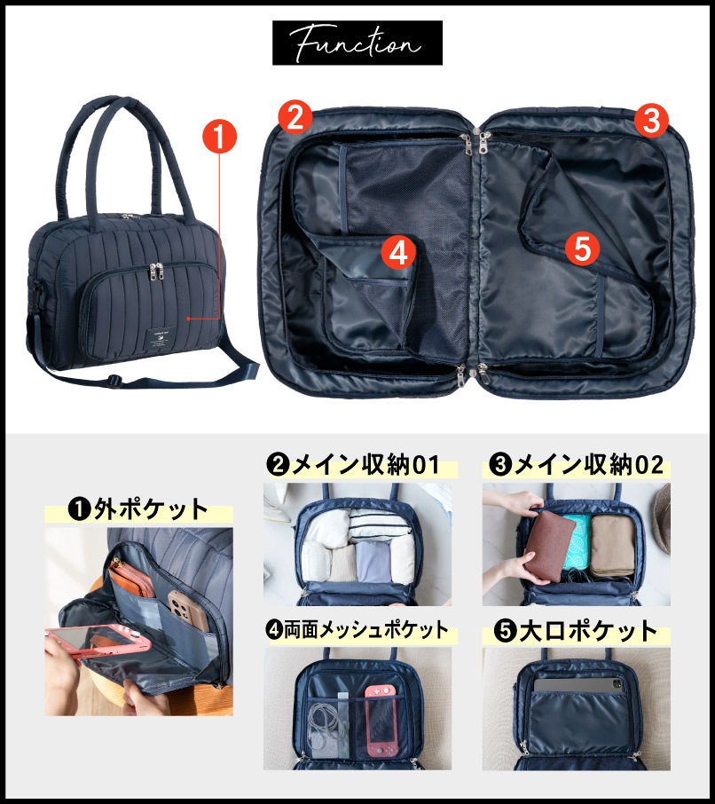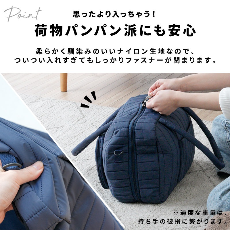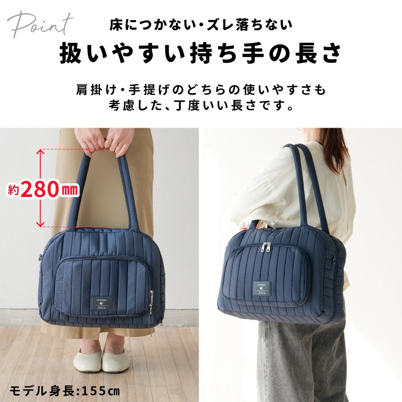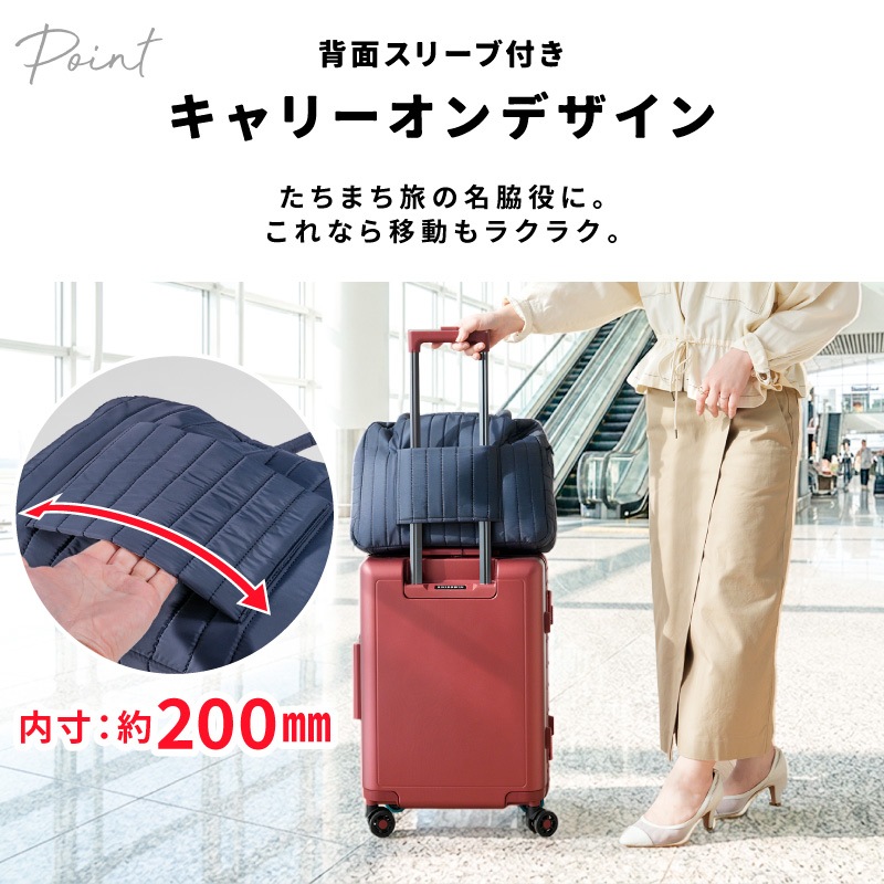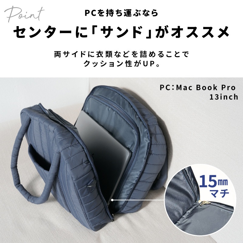 スーツケースより身軽、ハンドバッグ以上の収納力。 “たちまち旅”をスマートにする、トラベルスーツバッグです。 ●本のようにパカっと開く設計で、中身が一目瞭然。探す・取り出すがスムーズ。 ●たっぷり入る2つの立体メイン収納。ファスナーで封ができ、衣類にシワがつきにくい構造。 ●小物ポケットをめくるとメイン収納が登場。整理したままアクセス可能。 ●両面メッシュポケットで小物が迷子にならない。裏返しても使える仕様。 ●PCやタブレットはセンターに“サンド”収納。衣類がクッション代わりになり安心。 ●前面にはダブルファスナーの大きな2口ポケット。電車内や移動中でもサッと取り出せます。 ●柔らかく馴染みの良いナイロン生地。つい入れすぎてもファスナーが閉まりやすい。 【持ち運びも快適】 ふわっとしたウレタン入り持ち手で、肩への負担を軽減。 ショルダーベルト付きで両手フリーもOK。 【キャリーオン対応】 背面スリーブ付きでスーツケースに固定可能。 移動の多い旅行や出張の強い味方です。 |