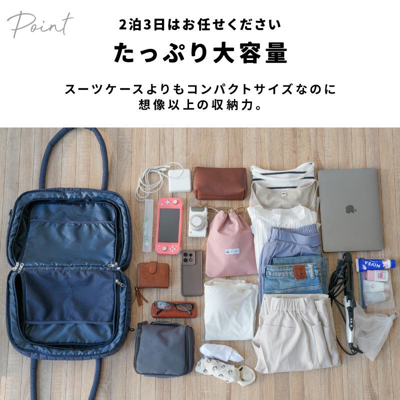 ◆2泊3日程度の旅行バッグを探している方 ◆スーツケースほど大きくないバッグが欲しい方 ◆中身を整理しやすいトラベルバッグを使いたい方 ◆PCやタブレットを一緒に持ち運びたい方 ◆出張・家族旅行・スポーツなど幅広く使いたい方 ◆男女問わず使えるシンプルデザインを探している方 |